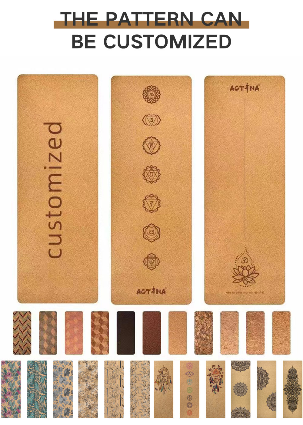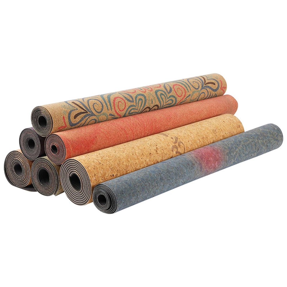 Customized cork natural rubber yoga mat with UV printing